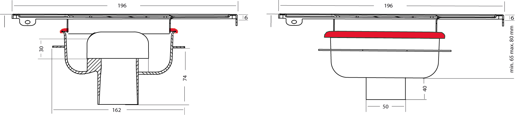 Deze doucheput heeft een afmeting van 196×196 mm zodat hij perfect in het tegelwerk past. Het deksel en de stankafsluiter zijn eenvoudig uitneembaar voor schoonmaakwerkzaamheden. Met een ruime afvoercapaciteit van 0,5 l/sec. is deze put geschikt voor vrijwel elke doucheruimte. Het bovenstuk is in hoogte verstelbaar en draaibaar zodat de doucheput eenvoudig te plaatsen is. Hiernaast zorgt de standaard zandhuid voor optimale hechting met het cement of beton. De verlijmbare onder afvoer heeft een diameter van 50 mm en de put zelf is gemaakt van duurzaam en hoogwaardig ABS kunststof. De dekselvergrendeling zorgt ervoor dat het deksel niet uitgenomen kan worden zonder gereedschap.