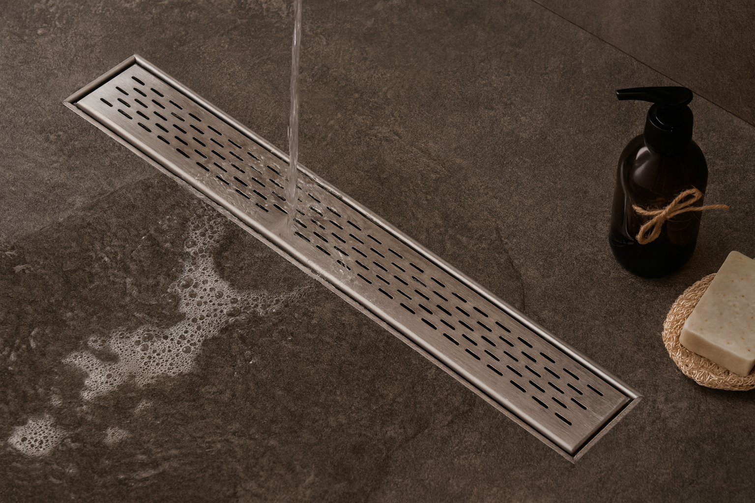 De bodem loopt af naar het uitneembare sifon waardoor al het water optimaal afgevoerd wordt. De afvoerdiameter is 50 mm en het sifon heeft ook een waterslothoogte van 50 mm waardoor deze douchegoot voldoet aan het Bouwbesluit en toegepast mag worden voor nieuwbouw projecten. Het MicroSlot 15 rooster is voorzien van elegante lijnvormige sleuven van 15×3 mm en biedt een strakke, moderne uitstraling. Uiteraard is deze douchegoot voorzien van aardingspunt.