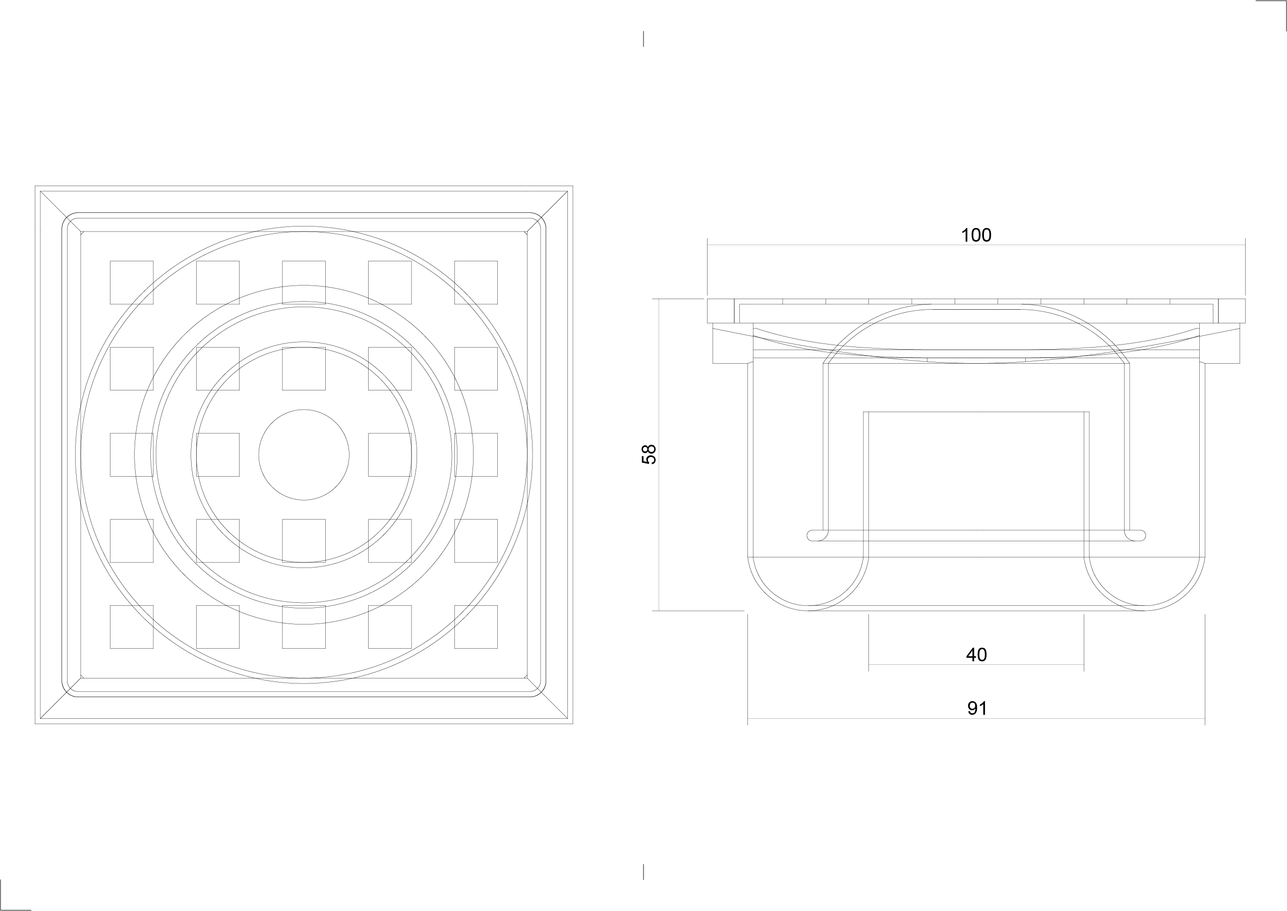 Deze doucheput heeft een afmeting van 100×100 mm. Het deksel met vierkante gaten en aangelaste stankafsluiter zijn eenvoudig uitneembaar voor schoonmaakwerkzaamheden. Met een afvoercapaciteit van 0,3l/sec. is deze put geschikt voor de meeste doucheruimtes. Door de behuizing van hoogwaardig ABS kunststof is de afvoer eenvoudig te verlijmen met PVC lijm. De kunststof bovenrand is in hoogte verstelbaar wat het plaatsen makkelijk maakt.  Diameter van de inwendige onder afvoer is 40 mm.