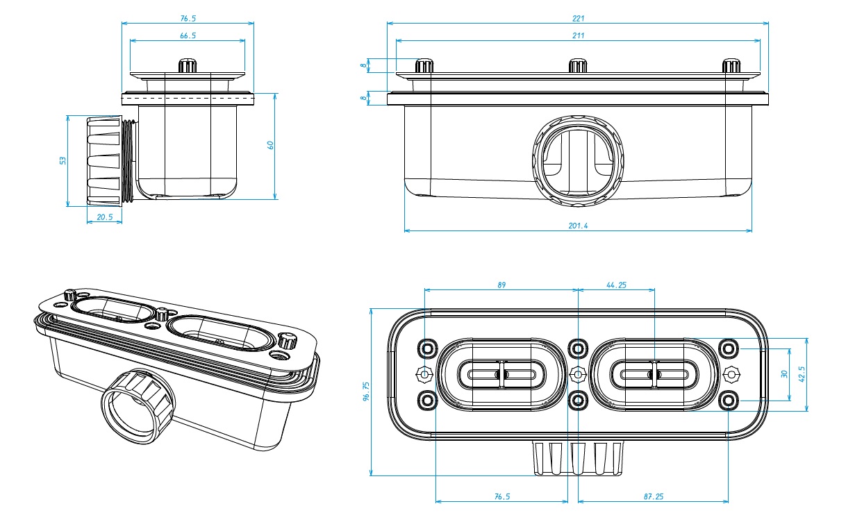 Deze afvoerplug is geschikt voor douchevloer model Comfort en Wellness en heeft een horizontale afvoer Ø 40 mm. Deze komt onder de douchevloer en van boven komt er een klemring in de douchevloer zodat de douchevloer waterdicht aangesloten zit op de afvoerplug. De ingebouwde stankafsluiter is gemakkelijk uitneembaar voor onderhoud.