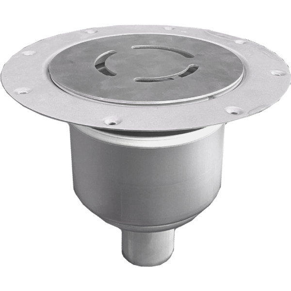 RVS afvoerput, geschikt voor vinylvloeren. Voorzien van onderuitlaat Ø 50 mm.
