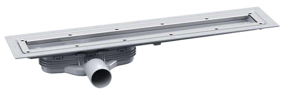De VinylFit is een stijlvolle vloergoot speciaal ontwikkeld voor vinylvloeren. Met een lage inbouwhoogte van 83 mm en een 50 mm zijuitlaat is deze perfect geschikt voor montage in betonvloeren. De goot wordt geleverd met een uitneembaar NOOD-waterslot, een roestvrijstalen klemframe en een compleet installatieset. Het slimme NOOD-waterslot voorkomt nare geuren, zelfs wanneer er geen water in de sifon staat. Voor een correcte plaatsing dient de goot minimaal 200 mm van de wand te worden geïnstalleerd. Rooster los verkrijgbaar.