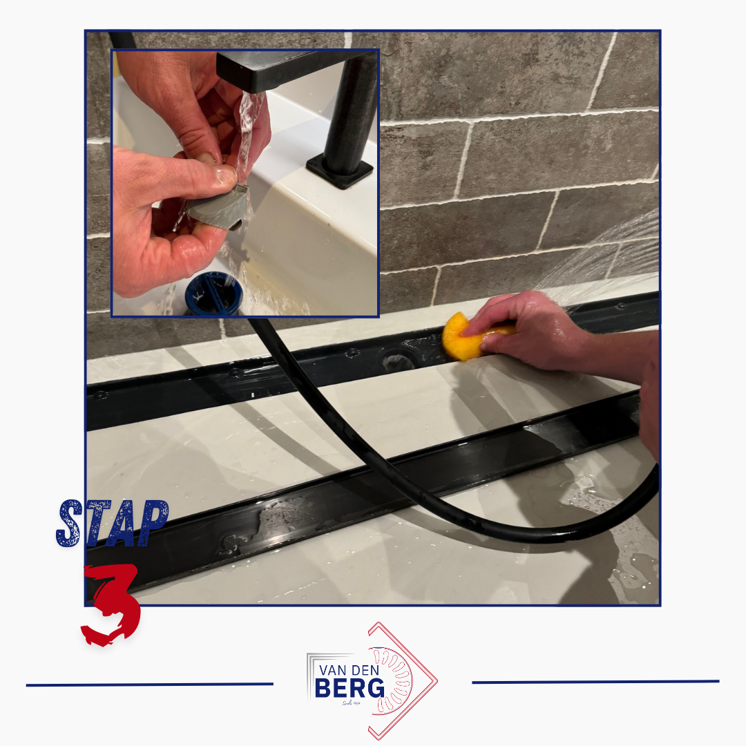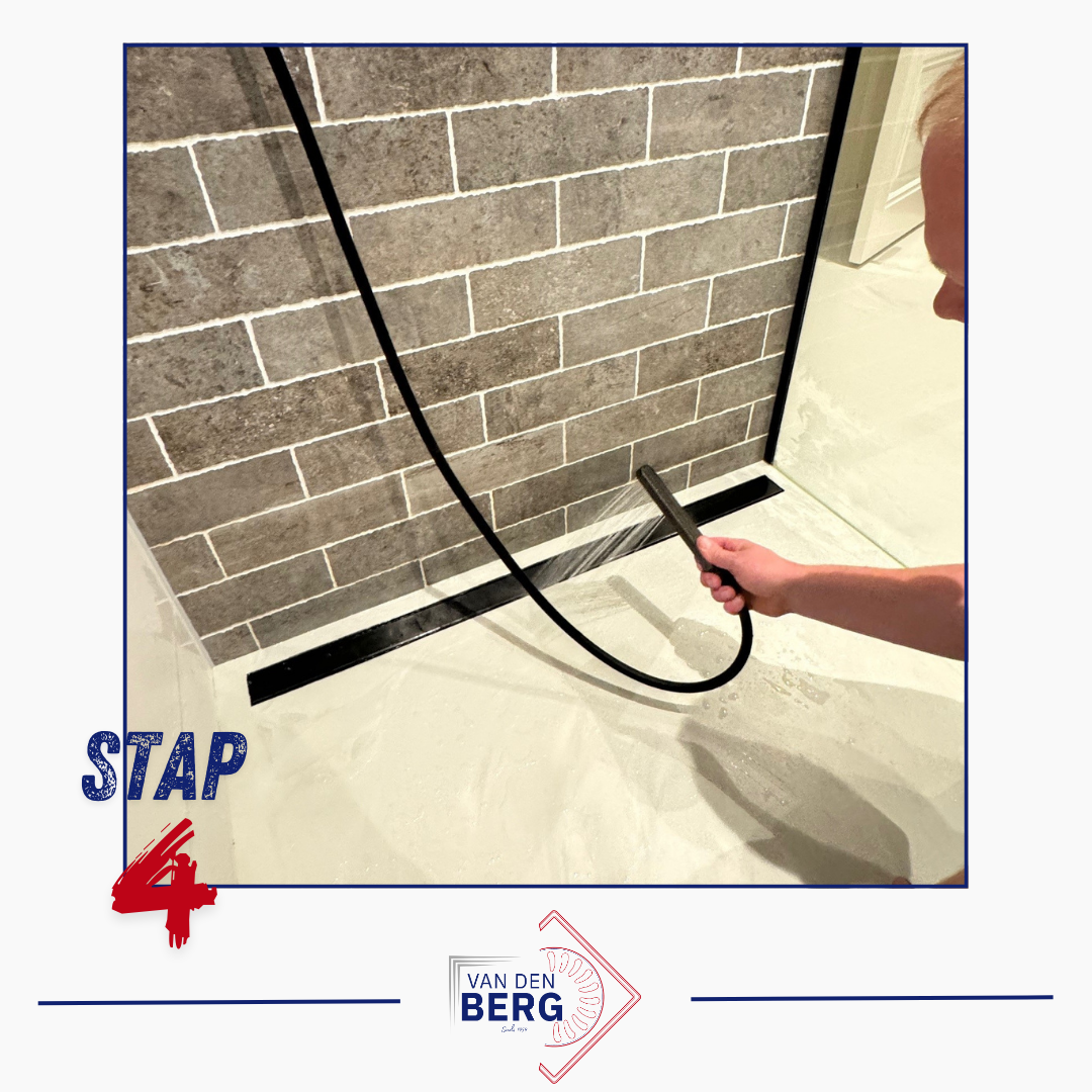 Spoel de doucheput rijkelijk na met schoon water om alle resten van de allesreiniger te verwijderen.