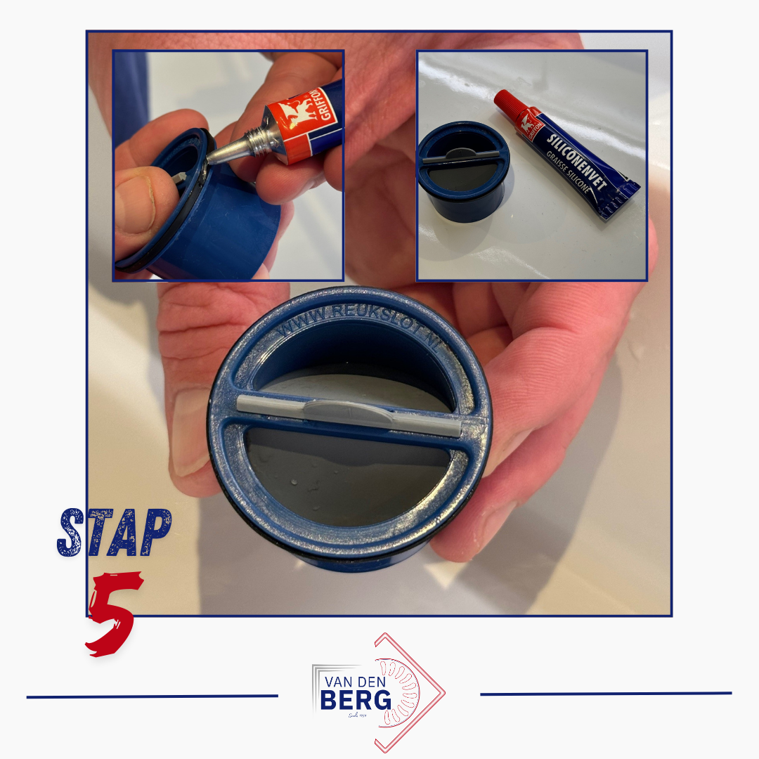 Plaats de stankafsluiter terug op dezelfde manier als deze erin zat. Bij stankafsluiters met een rubberen afdichtring is het raadzaam deze in te vetten met zuurvrije vaseline. Zo gaat de stankafsluiter er een volgende keer gemakkelijker uit.