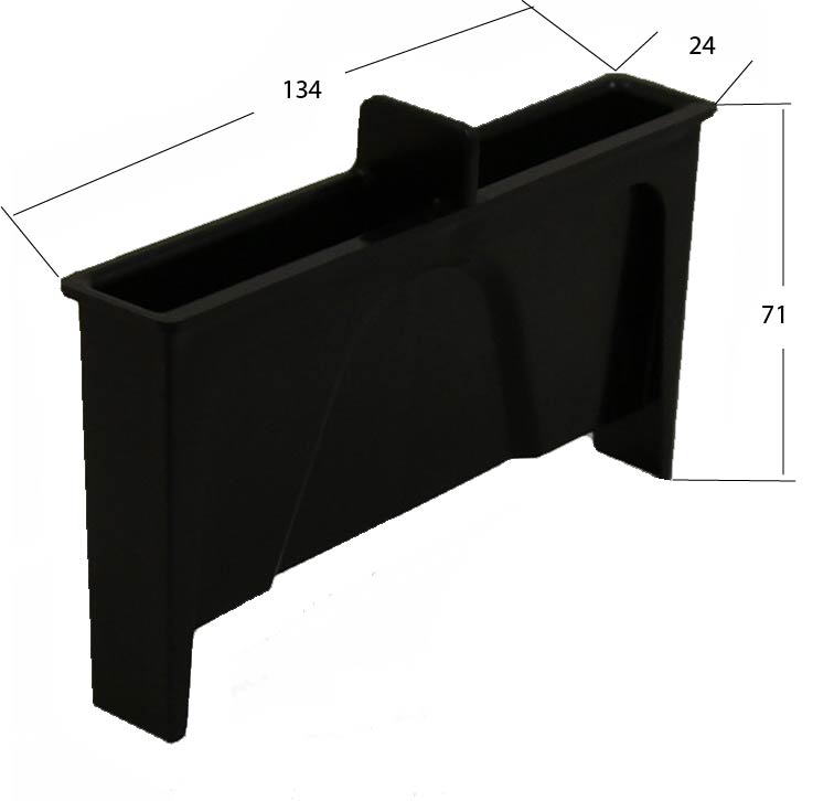 Dit micro waterslot heeft een afmeting van 134 x 24 x 71 mm. In het verleden is dit type waterslot ook gebruikt voor de Patent Line douchegoten maar tegenwoordig worden ze alleen toegepast in de Perfect Line douchegoten. Het materiaal is ABS kunststof.